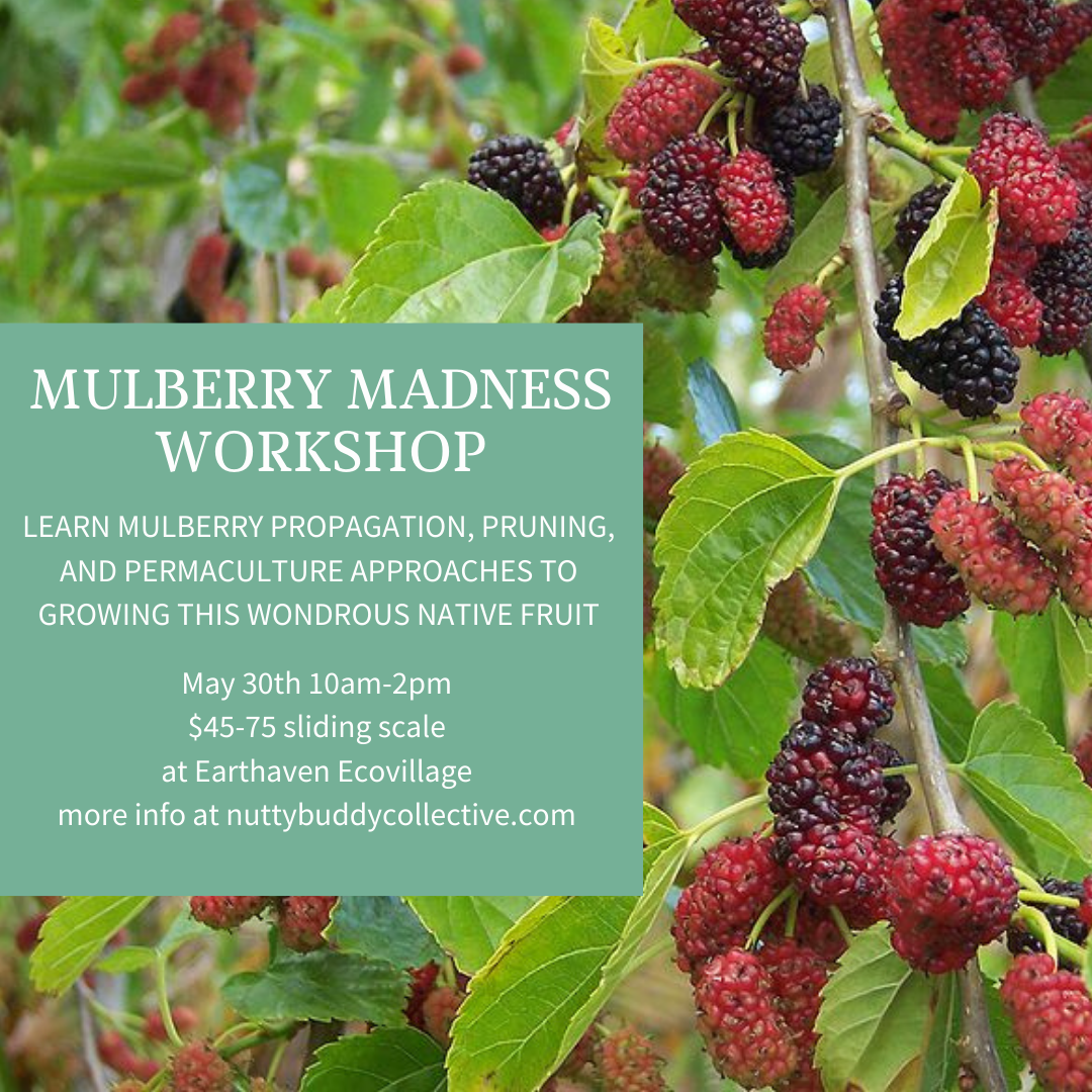 In this half-day, hands-on intensive at Earthaven Ecovillage, we’ll be exploring all things mulberry: cuisine and medicine; botany, pruning, and grafting; placement and integration into other farming, permaculture, and agroforestry systems as living fences and other applications; culture and history.