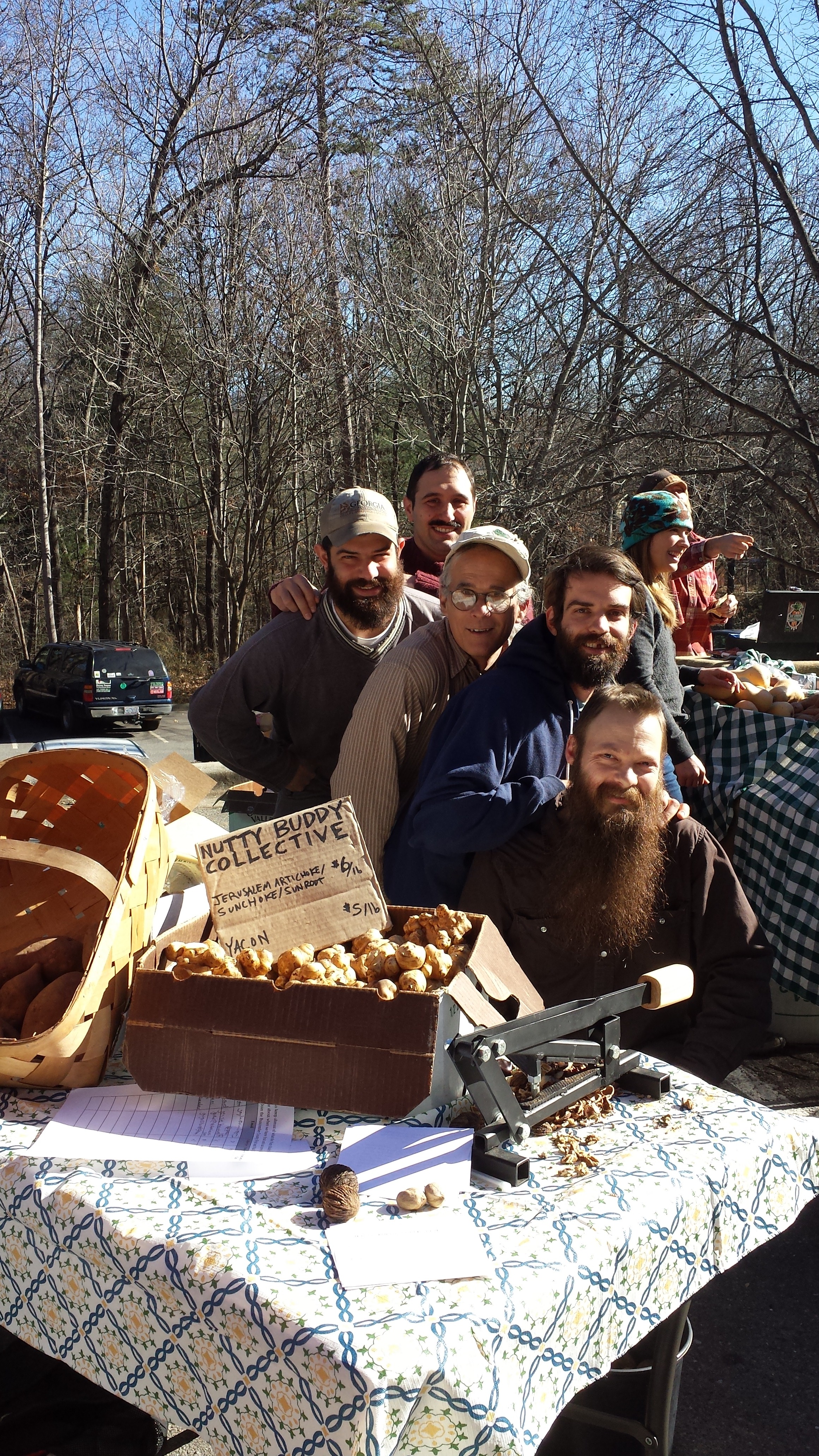 Holiday Market @ North Asheville Tailgate Market Leave a reply Representing with Yacon and Sunchokes. We may need 15+ years before we deliver nuts to locals, so these cash crops provide us an opportunity to feel out the farmer’s market. The nut cracker and nuts drew lots of friendly market goers. Nutty Buddies Share this: Click to share on X (Opens in new window) X Click to share on Facebook (Opens in new window) Facebook Like Loading...